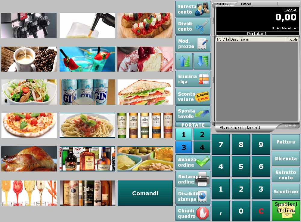 • Gestione pietanze: organizzate per categorie o ricercabili per codice/descrizione.