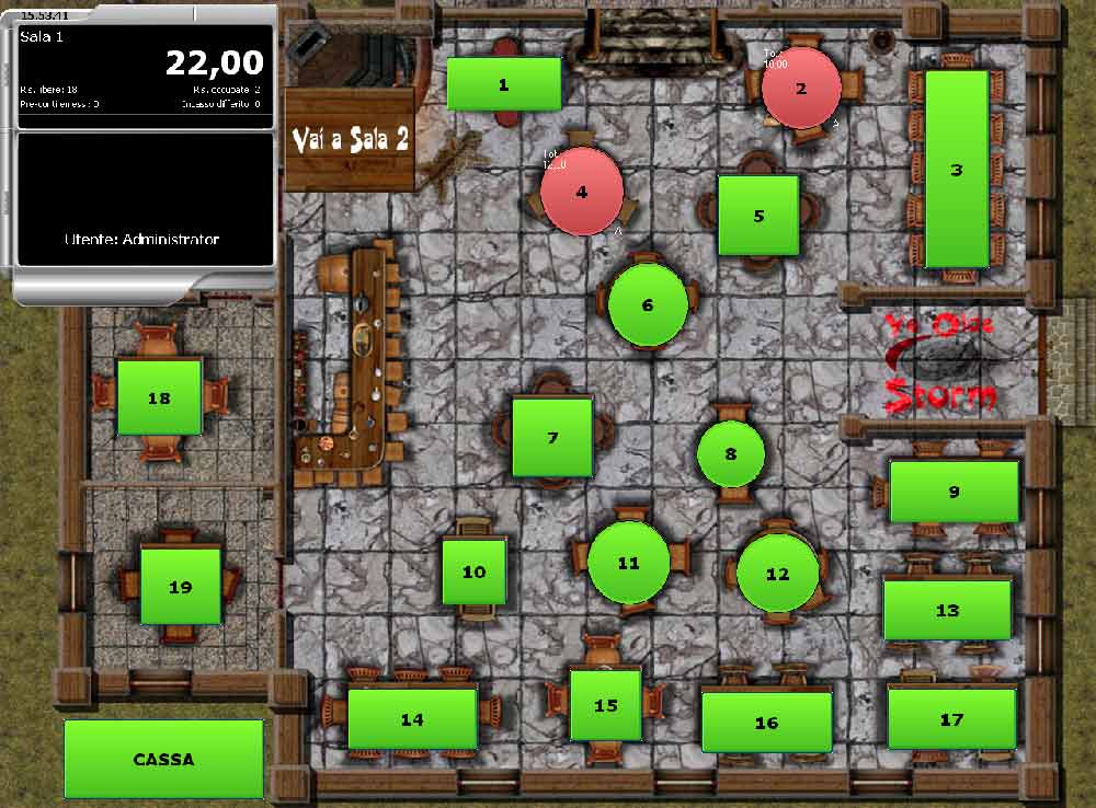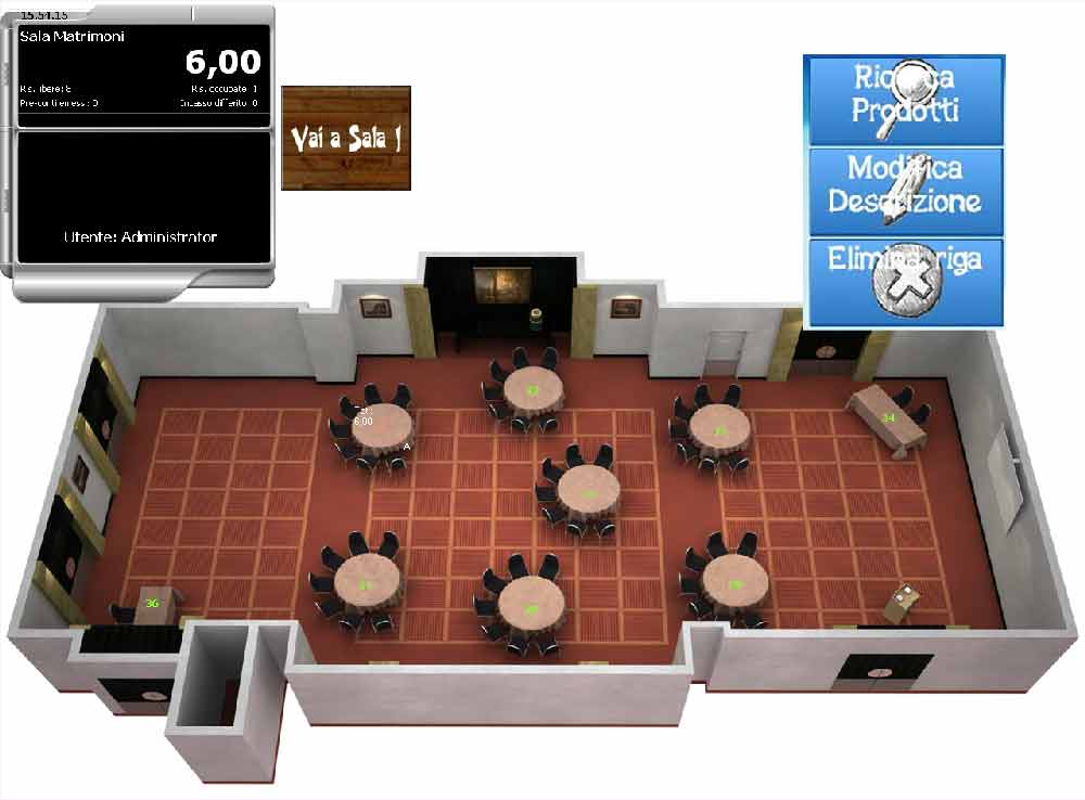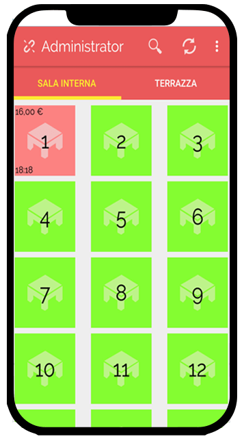 • Gestione tavoli: visualizzazione in tempo reale dello stato dei tavoli e delle consumazioni per area, con piantine grafiche intuitive.